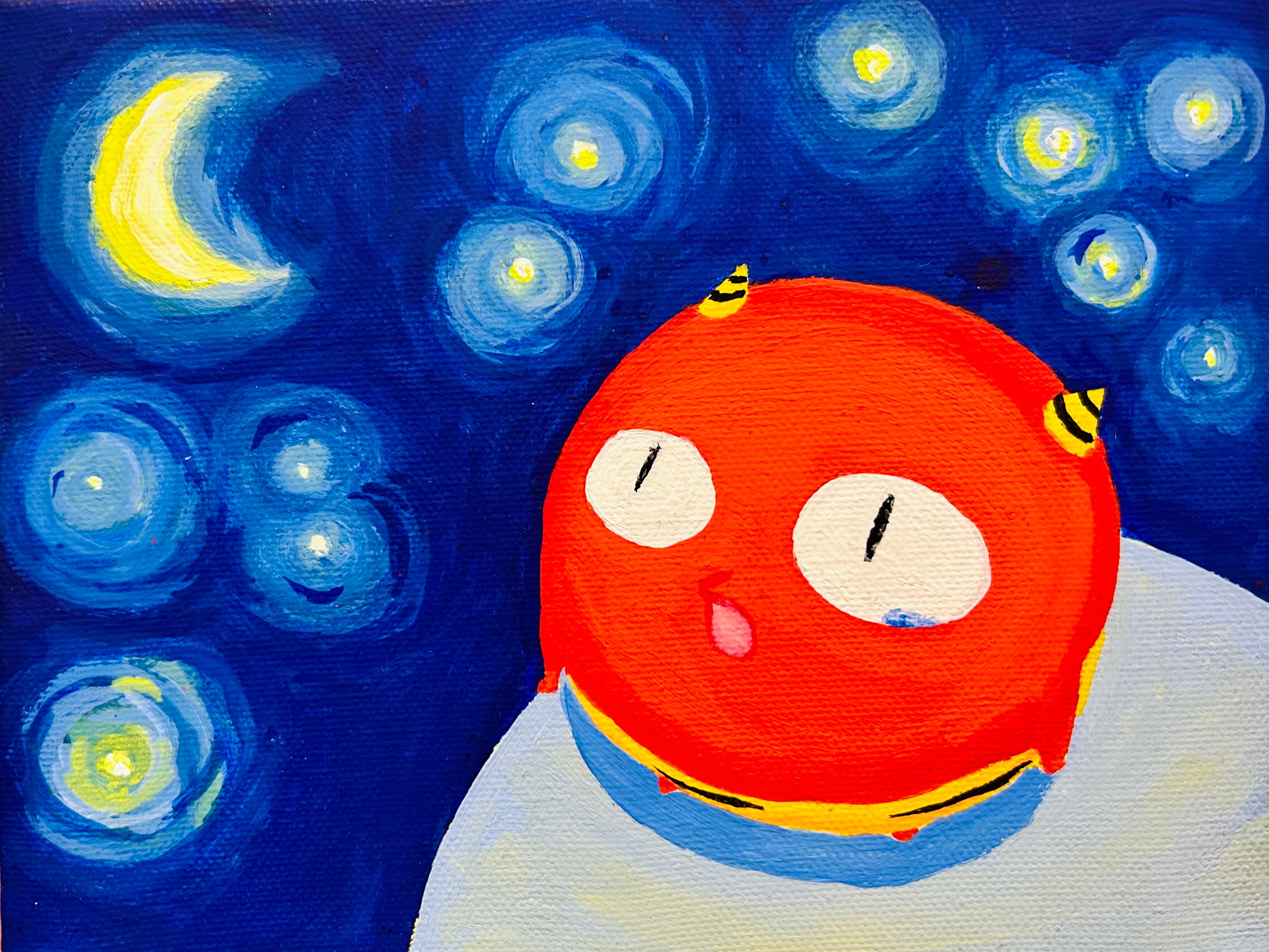 *おにのふくは、みんなをワルイコトから守りたい、パワーをおくりたい、そんなまんまるな赤おにです。