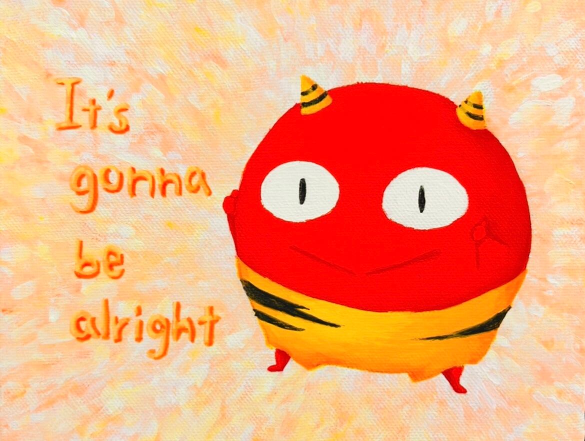 *おにのふくは、みんなをワルイコトから守りたい、パワーをおくりたい、そんなまんまるな赤おにです。